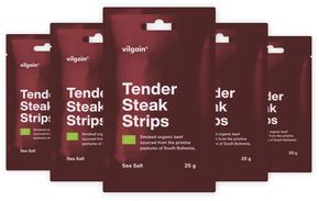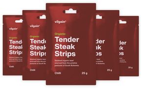 – fâșii de carne uscată din rase de vaci premium, mai mult de 92% carne de vită de calitate în fiecare pachet, modalitate practică de gustare