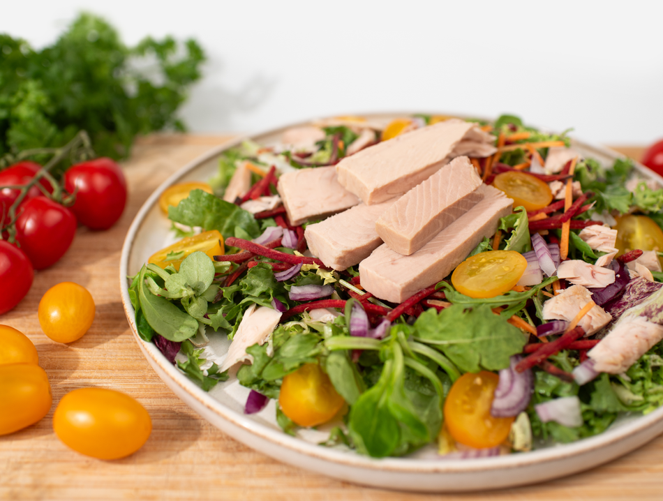 În borcanul practic veți găsi doar carne de pește, ulei de măsline și un vârf de cuțit de sare. Fără alte ingrediente care nu ar trebui să se afle acolo, cum ar fi conservanții artificiali. Încercați tonul cu sos teriyaki și orez, într‑o salată cu roșii cherry și rucola sau înlocuiți carnea tocată de vită într‑un burger de pește umflat.