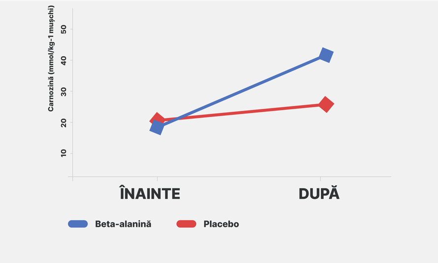 Nivelul carnosinei musculare la persoane antrenate înainte și după 10 săptămâni de utilizare a beta‑alaninei [2]